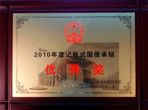 2010 Excellent Underwriter of Financial Bond from Agricultural Development Bank of China: